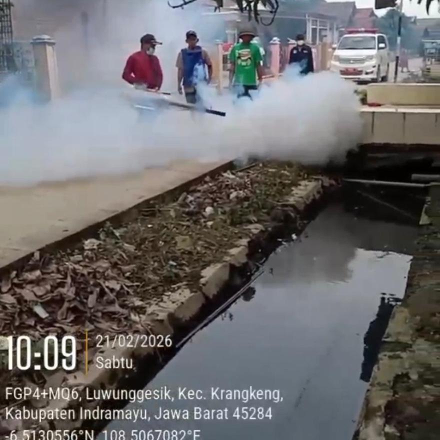 21 Februari 2026 21:42:42 | Administrator | 168 Kali | Berita DesaLUWUNGGESIK- Menanggapi ancaman penyebaran penyakit Demam Berdarah Dengue (DBD) di musim pancaroba, Pemerintah Desa Luwunggesik, Kecamatan Krangkeng, Kabupaten Indramayu, Bergerak cepat dengan melaksanakan penyemprotan fogging pada Sabtu, 21 Februari 2026. Penyemprotan ini menyisir dititik-titik desa, ..selengkapnya